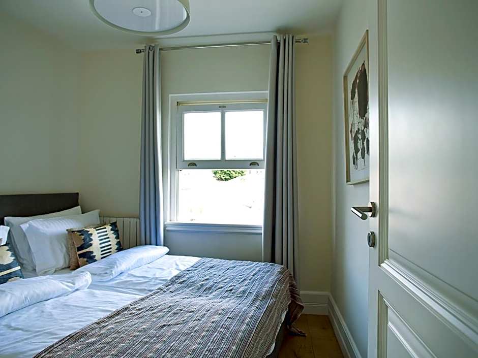 This stylish apartment includes a bedroom, living room, kitchen and a bathroom.
